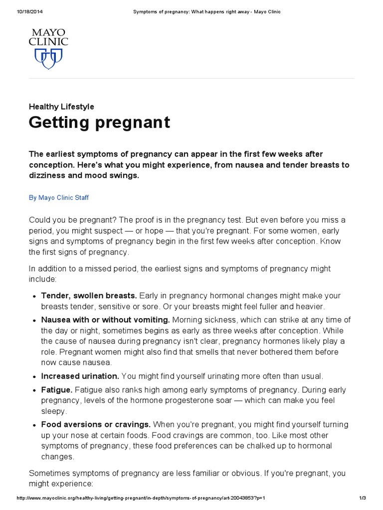 Mayo Clinic Early Pregnancy Symptoms