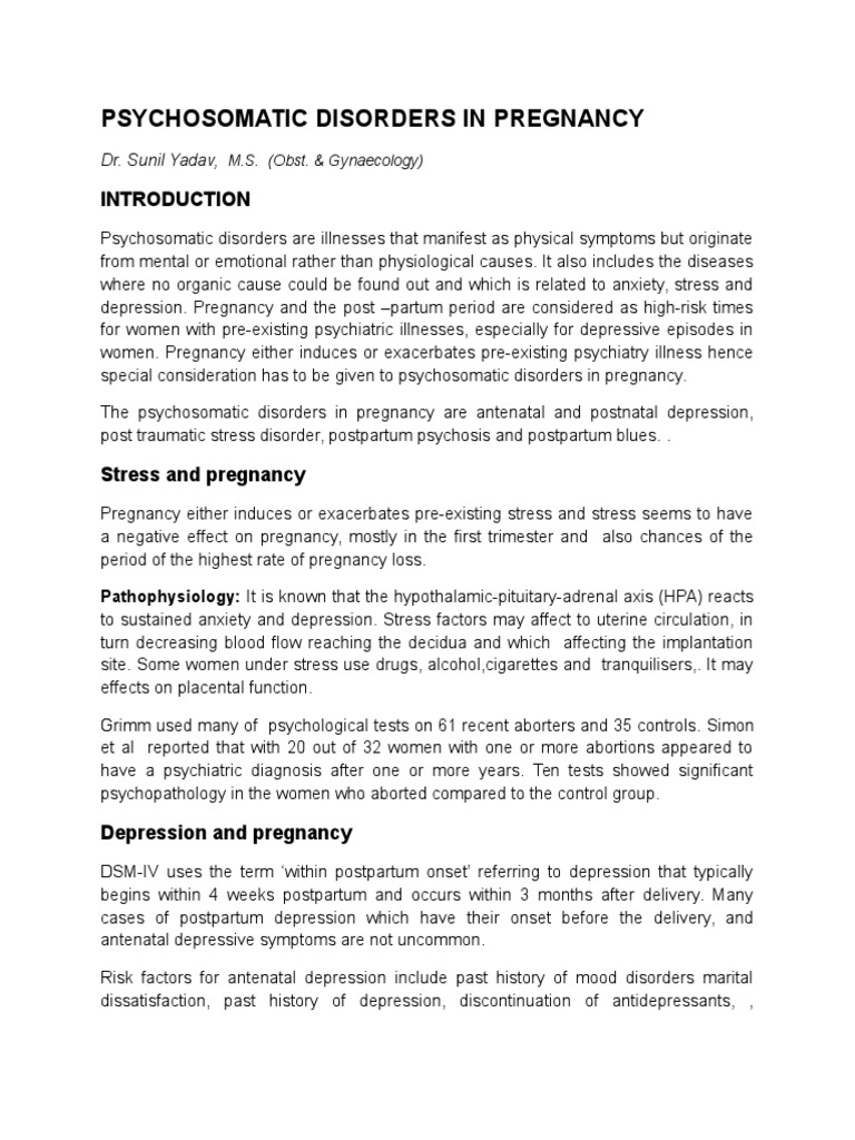 Specific sensations such as shortness of breath or pain. A psychosomatic illness originates from or is aggravated by emotional stress and manifests in the body as physical pain and other symptoms. It is generally believed that false pregnancy is caused by changes in the endocrine system of the body leading to the secretion of hormones that cause physical changes similar to those during. The field of psychosomatic medicine not to mention many of the most classic cases of in the history of psychiatry and psychoanalysis illustrates the impact of mental factors on physical illness.