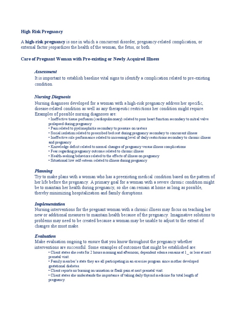 Sign and symptoms of high risk pregnancy. Often a pregnancy is classified as high risk because of issues that arise from the pregnancy itself and that have little to do with the mother s health. If you re at high risk for late pregnancy complications your doctor might recommend preemptive steps like frequent monitoring and testing based on your risk factors. Preeclampsia is a condition marked by high blood pressure in pregnant women. Pregnancy and swine flu is considered as another high risk combinations.