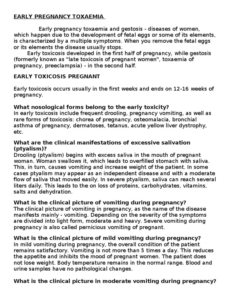 Toxicosis pregnancy symptoms. In toxicosis of pregnancy there are phenomena of the total autointoxication organism of the patient with primary functional and in severe cases morphological damage of separate systems and organs. According to medical data about 60 of pregnant women have similar symptoms in early pregnancy. In addition the following symptoms of toxemia can be observed which are characteristic of both the uterine and ectopic position of the fetus. Toxicosis is the state of health of the pregnant women arising as a result of poisoning by harmful substances.