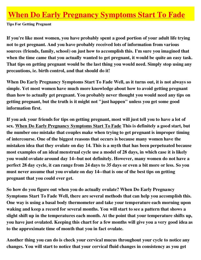 When Do Pregnancy Symptoms Start To Fade